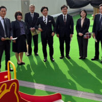 福岡市が獲得した航空法高さ制限の緩和をはじめ、市独自の容積率緩和を活用して民間ビルの建て替えを促進する事業である「天神ビッグバン」の第1号ビルが完成しましたので市議団で視察しました。