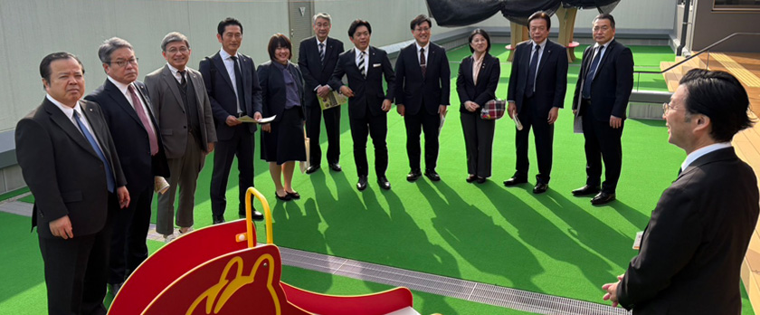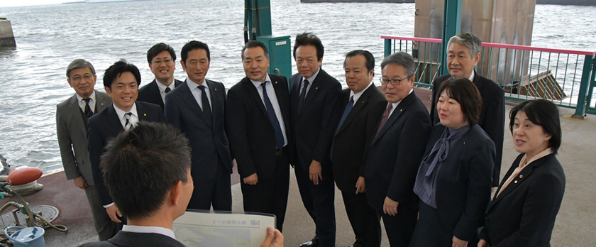 博多港は1899年に開港指定され、国際貿易港として発展を続けてきました。1990年に特定重要港湾へ昇格し、1993年の国際ターミナル、2015年のクルーズセンター供用開始などを経て、物流・人流の拠点港として躍進しています。現在もアジア・世界を結ぶ国際港として発展を続けており、視察時には上海からのクルーズ船が寄港し、昨年の寄港数204回を超える勢いの賑わいが見られました。